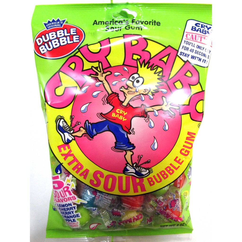 Dubble bubble bubble gum cry baby extra sour candy 4 ounce bag brand.
