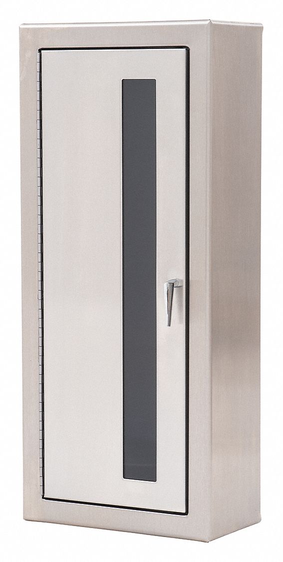 Fire extinguisher cabinet 19 1 4 in height 8 1 4 in width 6 3 4 in depth 5 lb capacity.