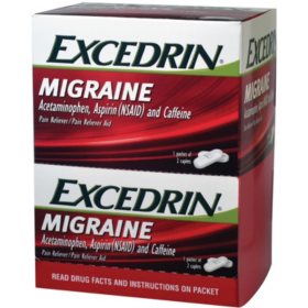 In excedrin migraine caffeine works to narrow blood vessels in your brain.