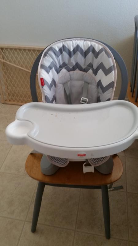 The fisher price spacesaver high chair is easy to convert from a space saving high chair to a comfortable height adjustable big kid booster seat.